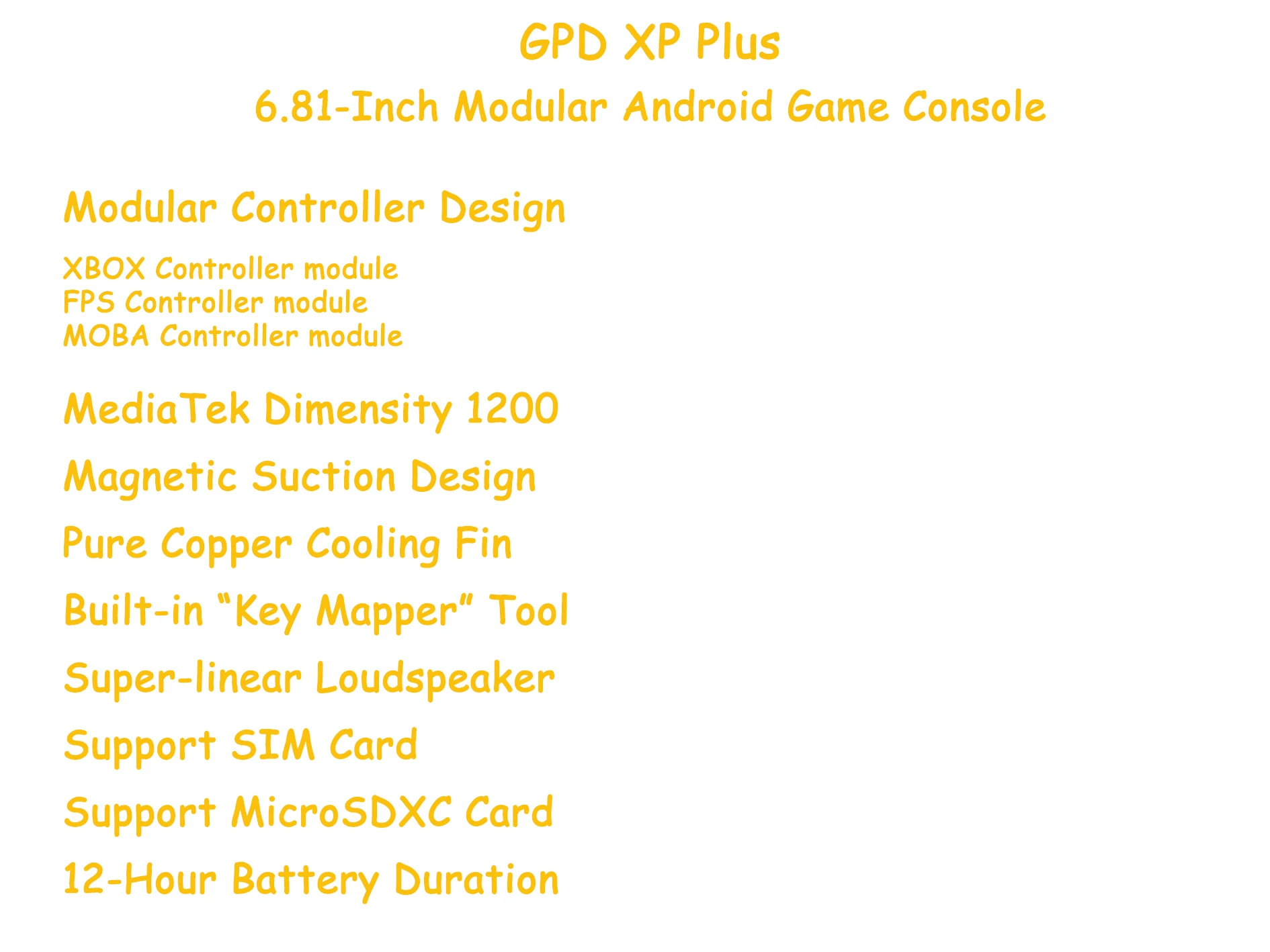 Touch Screen: YesnColor Display: YesnWIFI: YesnBluetooth-compatible: YesnScreen Resolution: 1920x1080nBattery Capacity: 7000mAhnExternal Controller Interface: Type-CnOperating System: AndroidnGames included: 1+nGames Type: Video gamesnnn|Gpd Xp Plus Price|Gpd Xp Plus Aliexpress|nn**Advanced Connectivity and Performance**nThe GPD XP Plus Handheld Game Console is not just a gaming device; it's a portable powerhouse that combines the convenience of a smartphone with the immersive experience of a dedicated gaming console. With built-in SIM card support and 4G high-speed internet access, you can stay connected and play online games wherever you go. The console's Wi-Fi and Bluetooth compatibility ensure seamless connectivity to your favorite games and social media platforms. The 1920x1080 screen resolution offers crystal-clear visuals, while the 7000mAh battery capacity ensures extended gaming sessions without interruptions.nn**Customizable Gaming Experience**nThe GPD XP Plus is not just a device; it's a versatile tool that caters to the unique needs of every gamer. The Key Mapper feature allows for customizable controls, enabling you to simulate touch-screen interactions with precision. The modular gamepad controller, with its magnetic interchangeable module, provides endless possibilities for personalization and adaptability. Whether you're a casual gamer or a hardcore enthusiast, the GPD XP Plus is designed to meet your specific gaming needs.nn**Optimized for Gaming and Beyond**nThe GPD XP Plus is more than just a gaming console; it's a portable entertainment center. The built-in active fan with pure copper cooling fin and a special key to control the fan speed ensures optimal performance by dissipating heat effectively. The device's compact size, at just 6.81 inches, makes it easy to carry, allowing you to enjoy your favorite games on the go. The GPD XP Plus is the ultimate gaming companion, offering a seamless blend of functionality and fun for gamers of all levels.