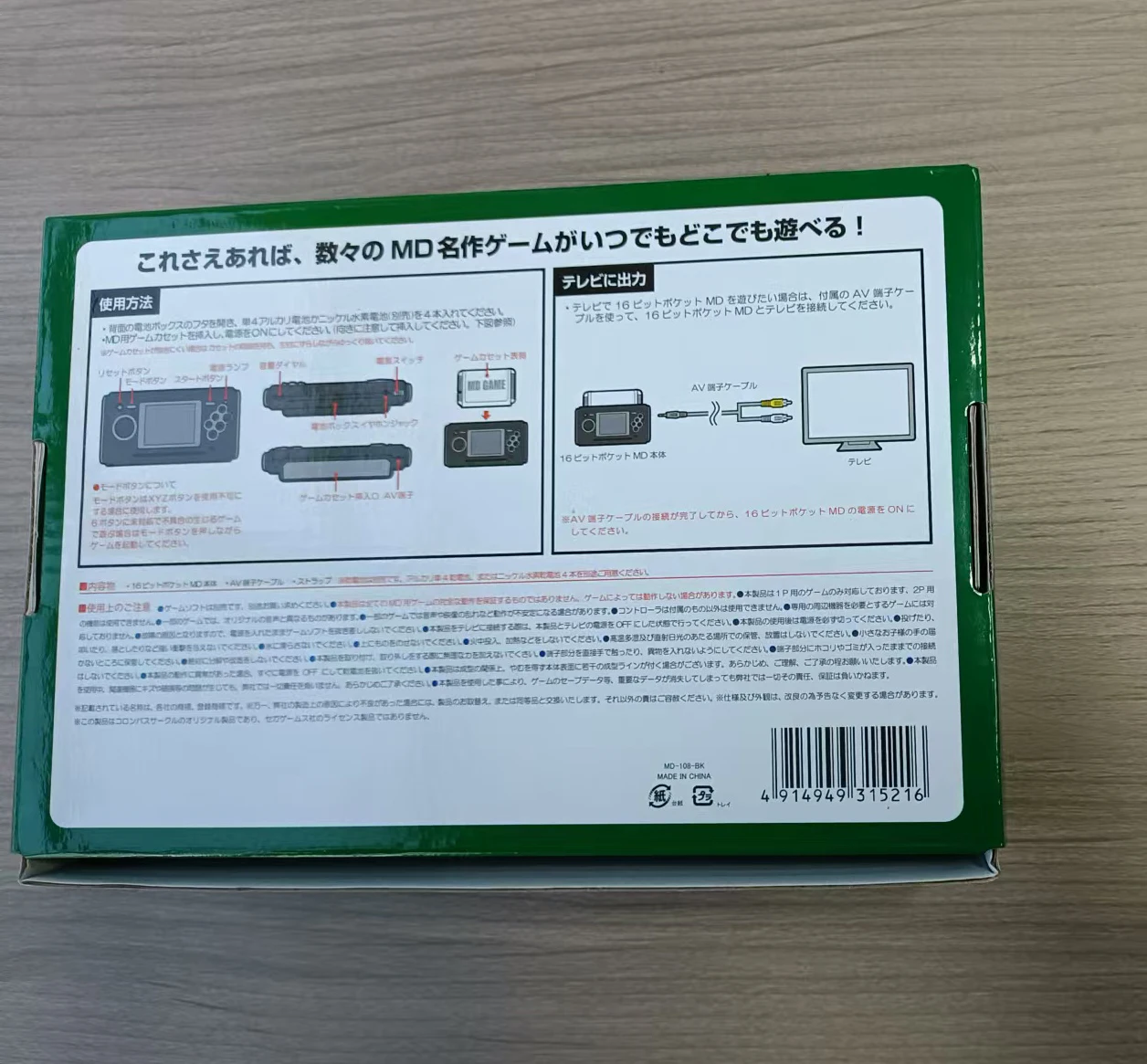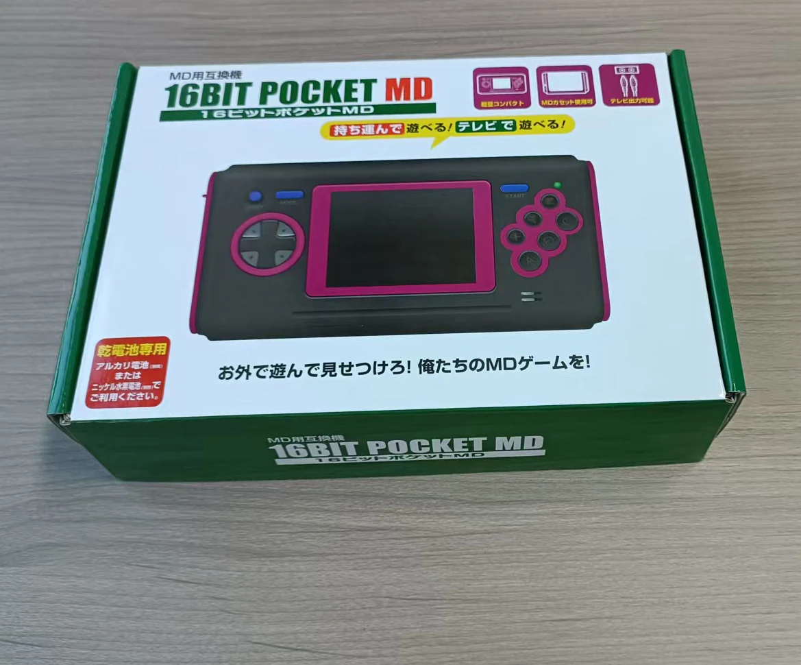 The 16-bit Pocket MD is a MegaDrive compatible console that allows you to enjoy MD games with a compact LCD! You can play it whenever with the use of alkaline batteries, or play it on TV using the included AV output cable.