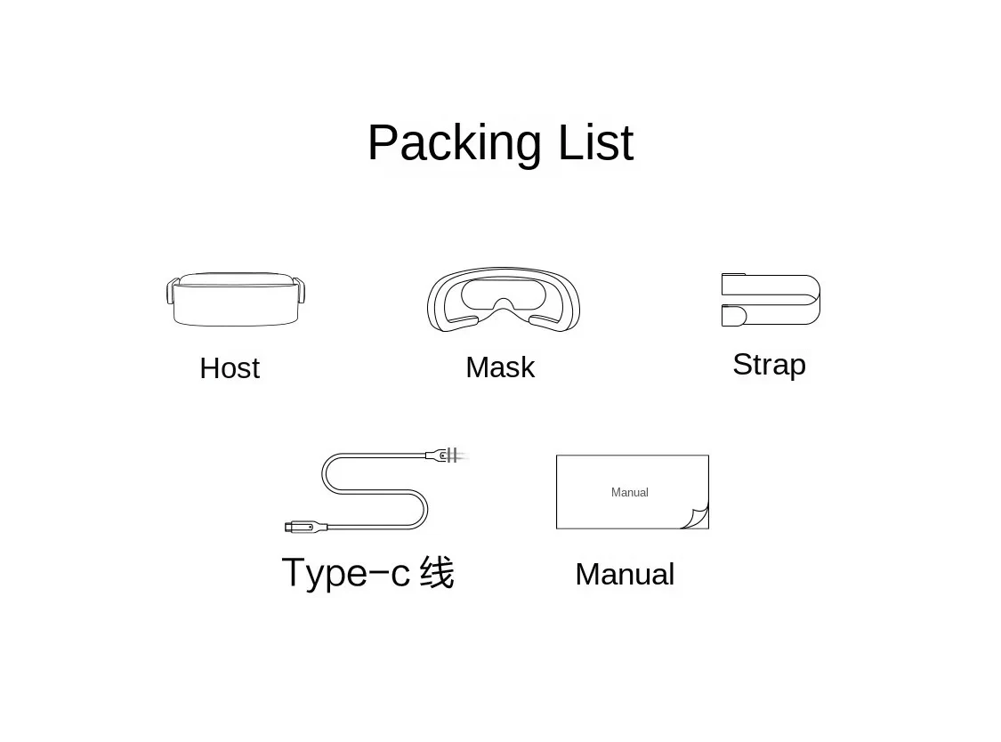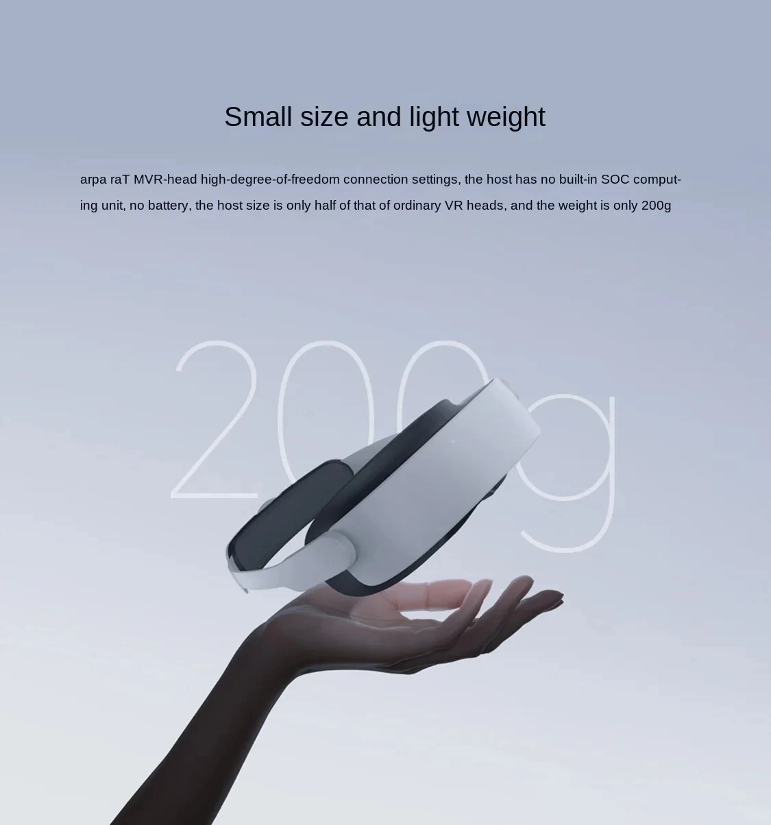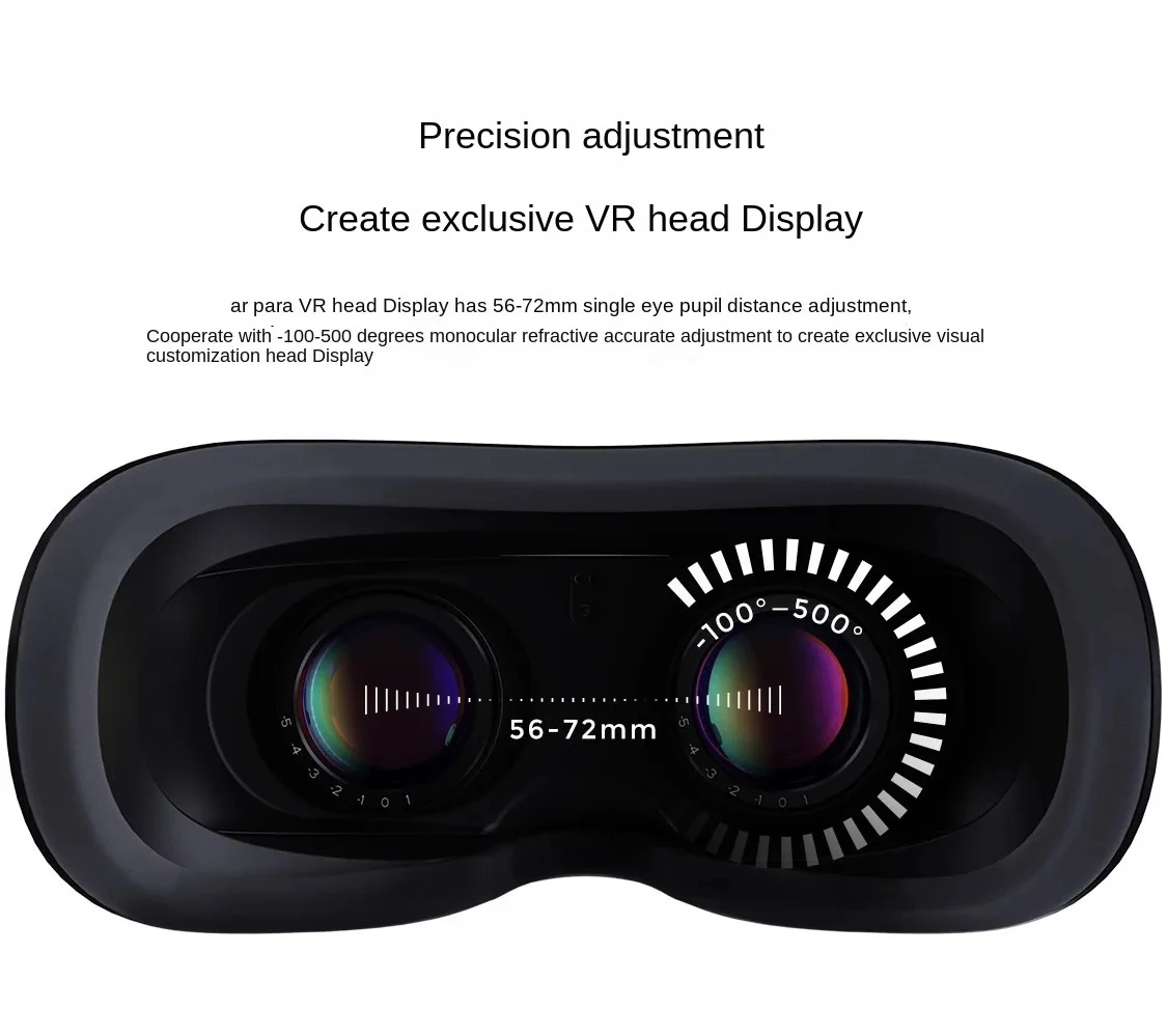 1. Small size and light weight: The host has no built-in SOC computing unit, no battery, the volume is only half of the ordinary VR headset, and the weight is only 200 grams