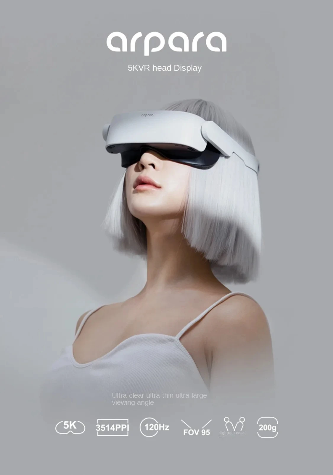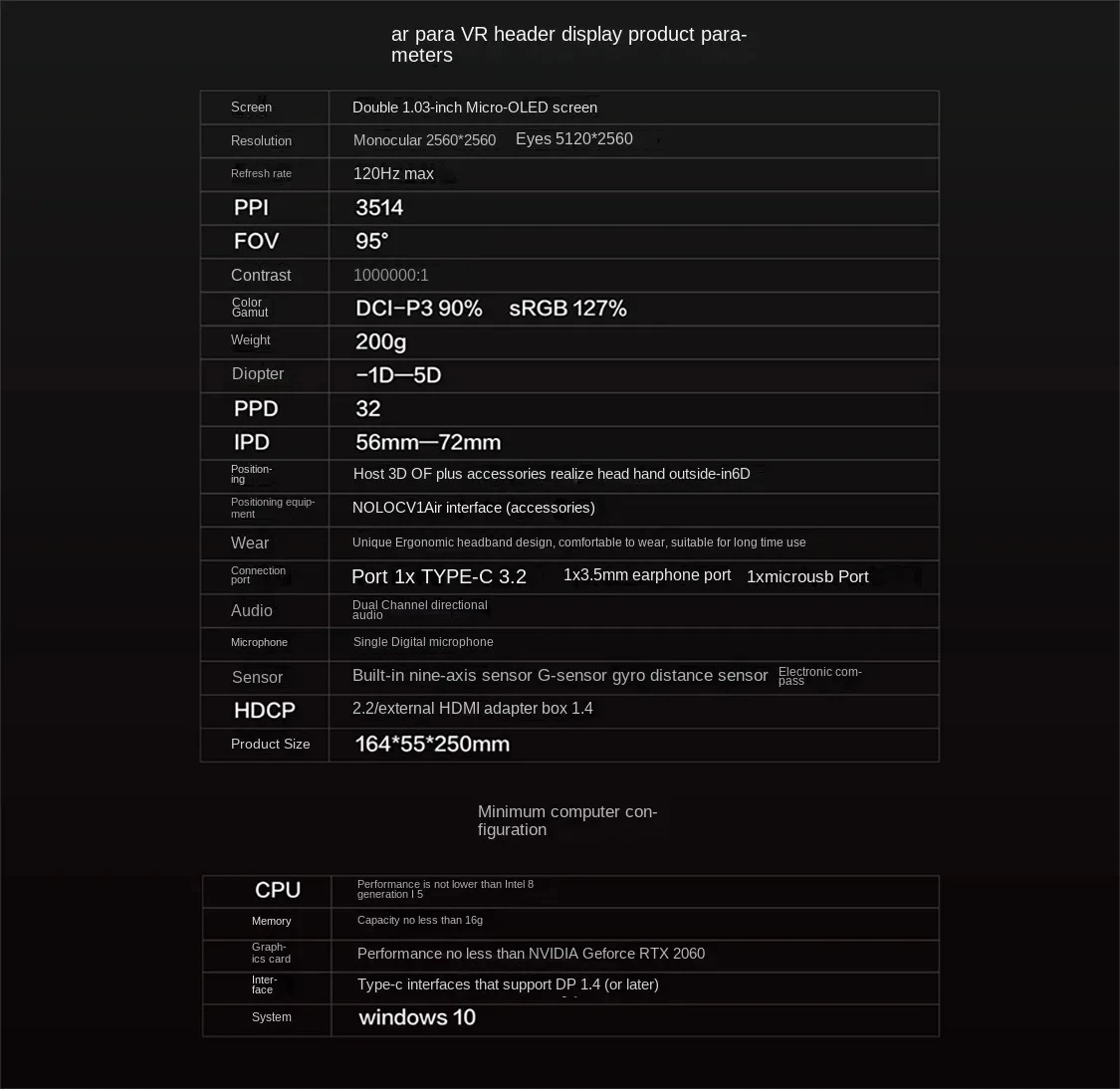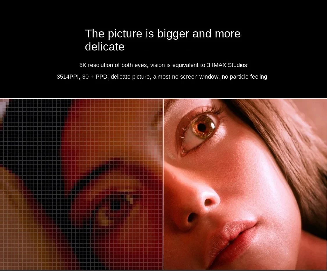 1. Small size and light weight: The host has no built-in SOC computing unit, no battery, the volume is only half of the ordinary VR headset, and the weight is only 200 grams