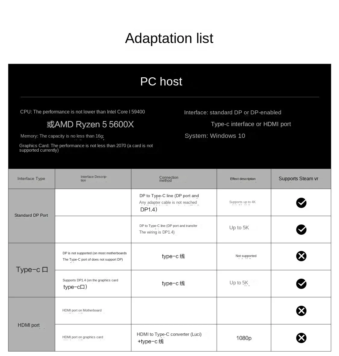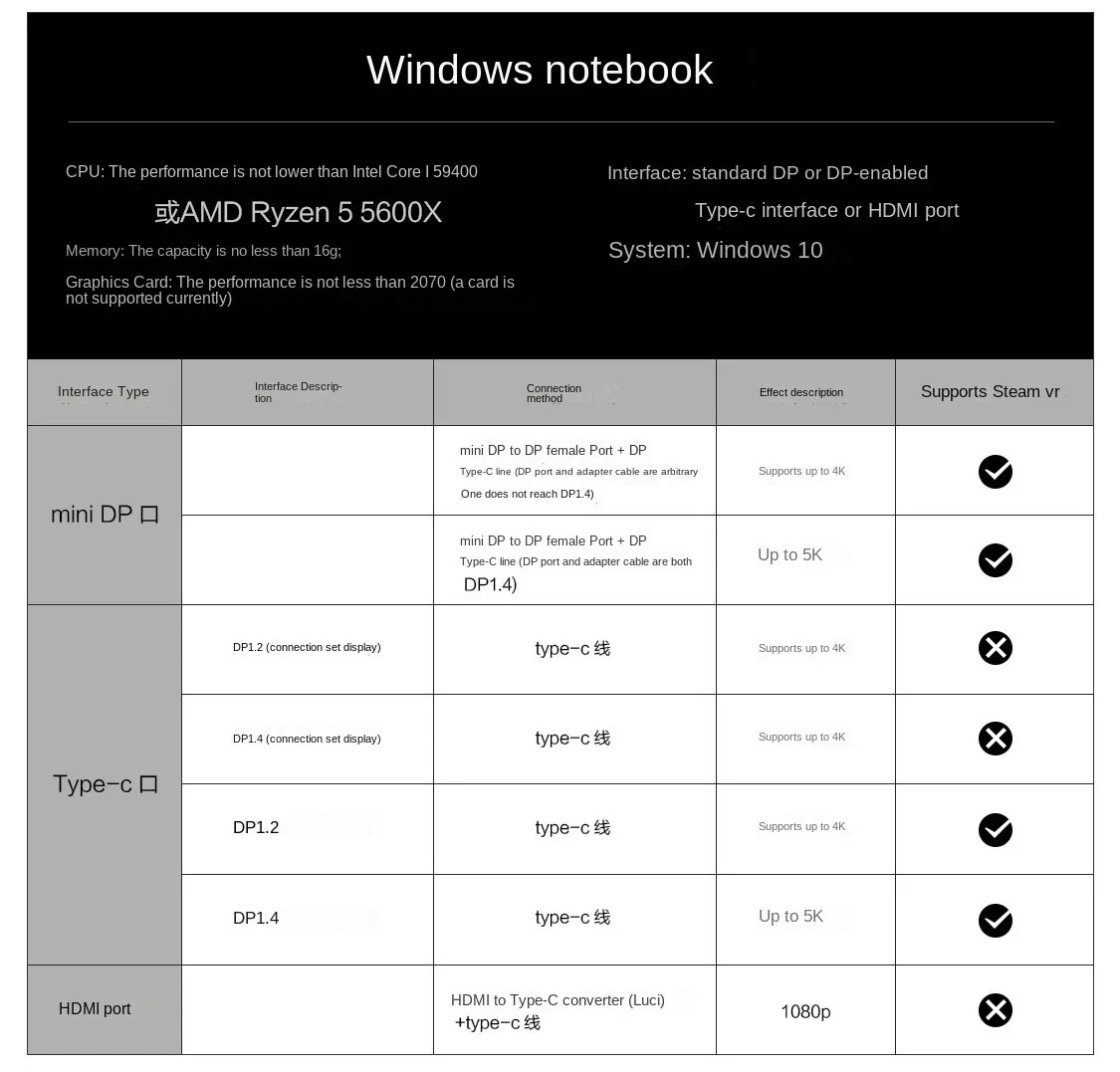 7. Connect computer: The headset is directly connected to the computer through a Type-C cable, which can realize 3DoF freedom, watch various 360° and 180° VR panoramic videos at will, and play various SteamVR 3A heavy games