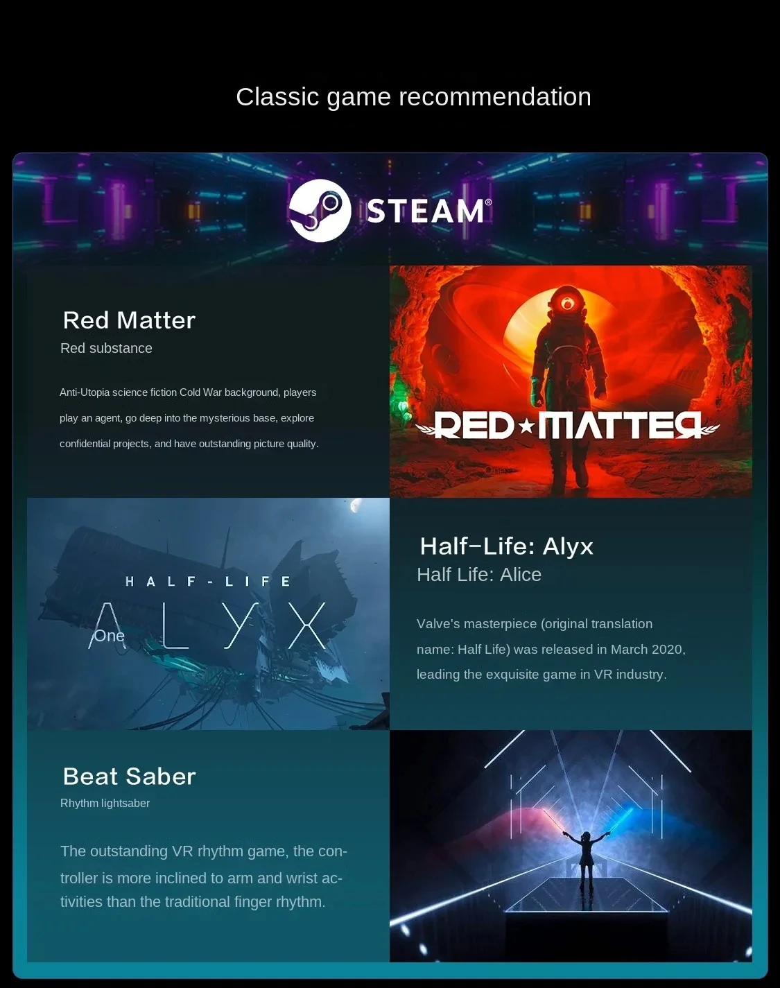 5. Thousands of VR games: Connect the arpara 5K VR head-mounted display to the PC computer, and use it with 6DoF positioning accessories to play various Steam VR games and enjoy 5K high-definition vision
