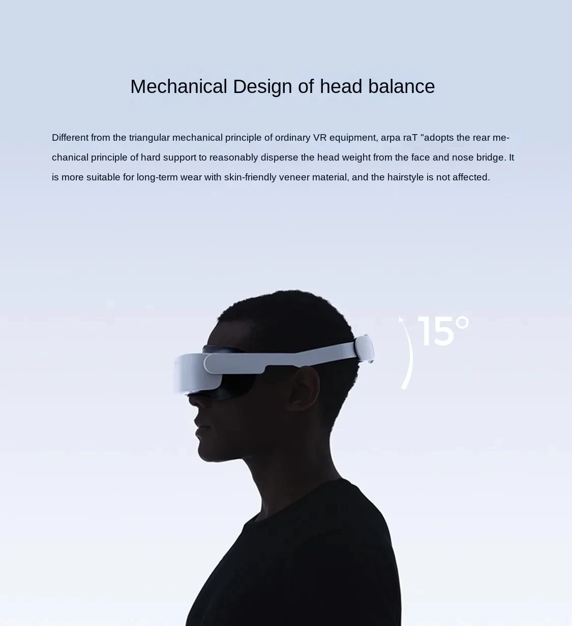 2. Head balance, mechanical design: Different from the triangular mechanics, arpara adopts the principle of hard support and rear mechanics. The weight of the headset is reasonably dispersed, suitable for long-term wearing