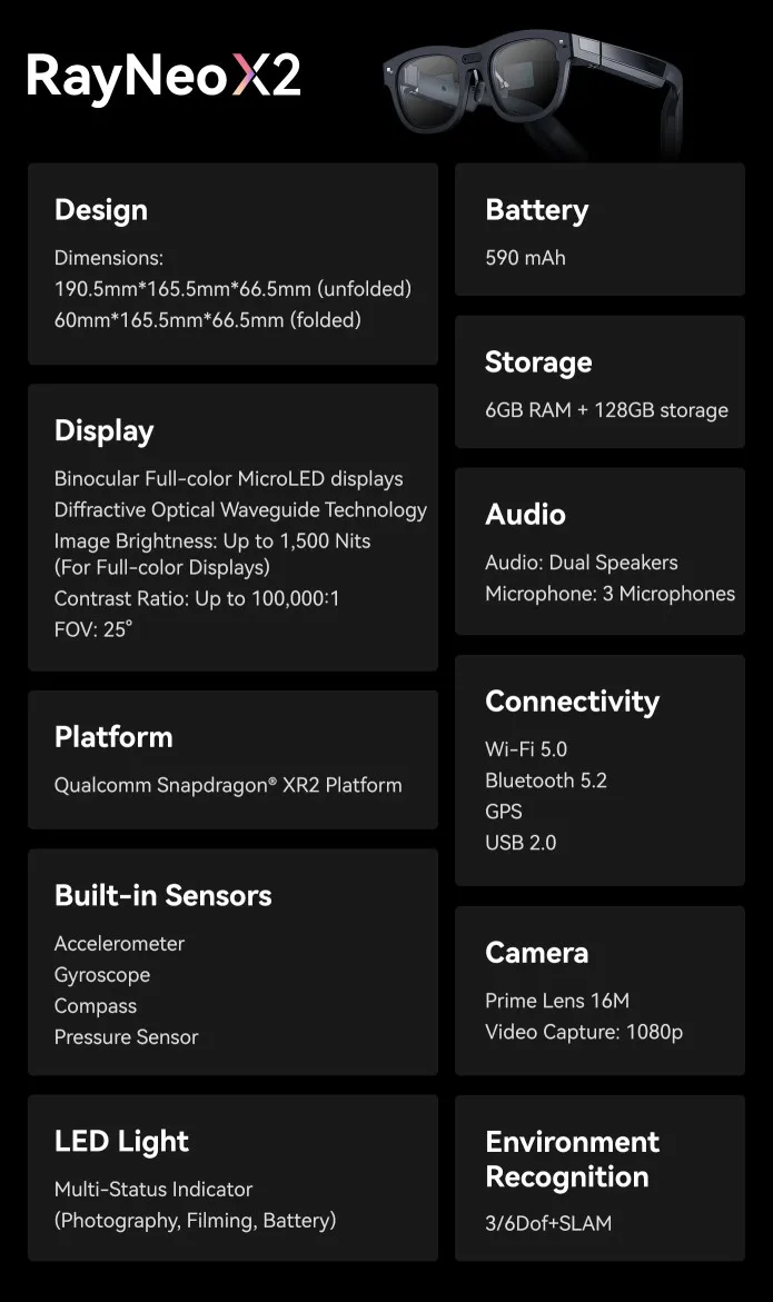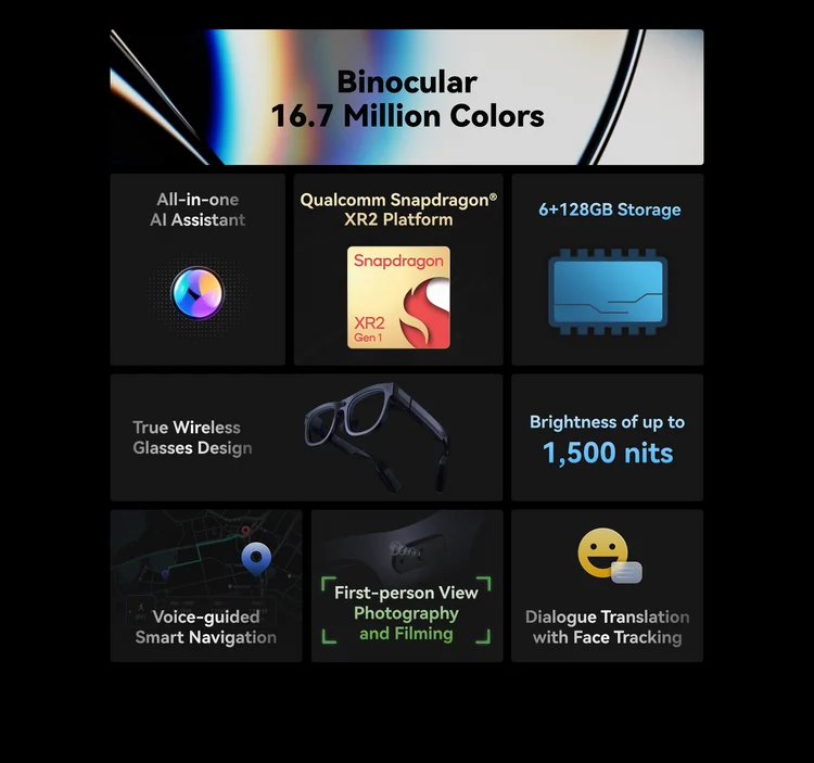 TCL RayNeo X2 Binocular Full-color Wireless AR Glasses AI-assisted Multi-language Dialogue Translation Voice Command Activation